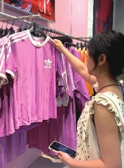 8月13日,在长沙市天心区IFS的阿迪达斯店内,“巴黎紫”的人形模特被摆放在橱窗显眼的位置,该模特上身穿着淡紫色短款上衣,下身穿着墨蓝色速干裤,很是亮眼。“模特身上这一套‘巴黎紫’穿搭目前卖得较好,经常一上午就能卖出三五套,很多消费者都是被这一套穿搭吸引从而进店购物的。此外,还有一款售价249元的香芋紫速干短袖,也已经卖光了。”该店店员说。