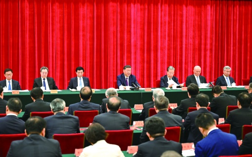 中共中央政治局常委赵乐际、王沪宁、丁薛祥、李希,国家副主席韩正出席座谈会,中共中央政治局常委蔡奇主持座谈会。