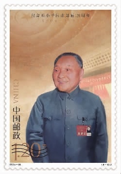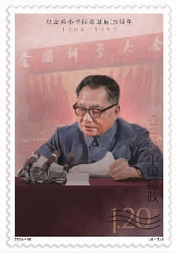 中国邮政于8月22日发行《纪念邓小平同志诞辰120周年》纪念邮票1套4枚,邮票图案名称为勤工俭学、戎马岁月、科学春天、改革开放。