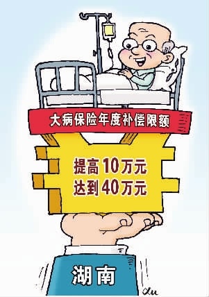 记者从湖南省医保局了解到,湖南大病医保的额度为40万元,这一额度适用于城乡居民基本医疗保险参保人员,当参保人员患大病发生高额医疗费用,经过居民基本医保按规定支付后,个人负担的政策范围内的医疗费用由大病保险按规定比例支付。