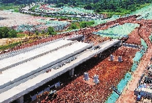 据悉,项目现已进入到了施工关键阶段,路基土石方、桥梁工程、排水工程等多个作业面已全部摊开,施工高峰期有100余名工人,60余台机械和车辆作业,单日出土量超2500立方米。目前,项目路基土石方工程已完成50%,排水管道工程已完成40%,按照计划将在10月完成土方、路基施工。