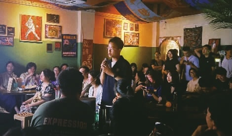 发起人刘博士(化名)也没有想到,初次试水会得到这么多人支持。酒谈不设门票,没有低消,参与者可以坐在台下放松聆听,也可以点一杯酒,在微醺中分享自己的观点。刘博士还和酒吧老板赵海晨商量,给酒水打折,设计了抽奖互动环节。