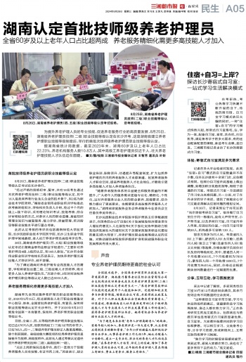 “为了满足湖南对养老护理专业高技能人才的需要,学校将更加注重二级、三级技能人才的培养,吸引更多人加入养老护理队伍。”苏琼介绍,3年时间该校养老护理员职业等级认定人数已达8000人次。