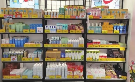 在长沙印象城的好特卖,美妆日化区占据近10个货架,商品标签均标注“有效期限”,大部分低价美妆产品保质期约6个月至1年。200ml雪肌精逸透纯柔化妆水、35ml雪肌精乳液套装零售价为79元,天猫官方旗舰店仅同款化妆水就要260元。
