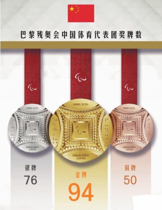 第17届夏季残疾人奥林匹克运动会于2024年8月28日至9月8日在法国巴黎举行。我国残疾人运动员顽强拼搏、奋勇争先、尽展风采,取得94枚金牌、76枚银牌、50枚铜牌的优异成绩,实现了比赛成绩和精神文明双丰收,其中湖南取得了12金2银3铜的好成绩,金牌居全国前五。据新华社