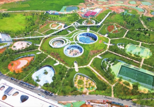 “公园总共分为7个区,7个区已经全部交地,目前启动区首开区一区、二区主体已经全部完成,预计10月份达到开园条件。”邓涛介绍,“市民可以在这里畅玩12个不同的主题乐园,还可以在空中廊桥体验到独特的观景视角。”