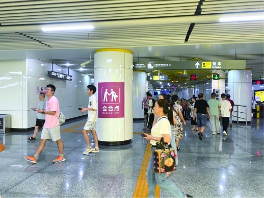 假期客流如织,与亲友碰面如何避免“众里寻他千百度”?长沙地铁万家丽广场站近期率先试点推出“真情会合点”,在站厅中部立柱增设醒目的“会合点”标识,方便市民乘客站内会合。