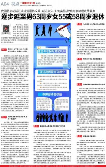 9月13日,全国人大常委会会议表决通过了关于实施渐进式延迟法定退休年龄的决定并对外发布。退休年龄具体怎么延?何时开始实施?能不能自愿选择弹性提前退休?“新华视点”记者第一时间采访权威专家,梳理政策要点。