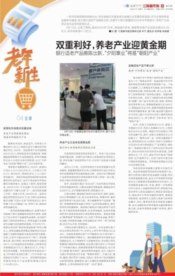 一系列政策措施的相继出台,养老金融正在逐渐成为金融行业发展的新蓝海。作为主要的养老金融参与通道,各大银行适老产品推陈出新,近期不少银行披露的2024年半年报显示,养老产业信贷正成为业务的新增长点。