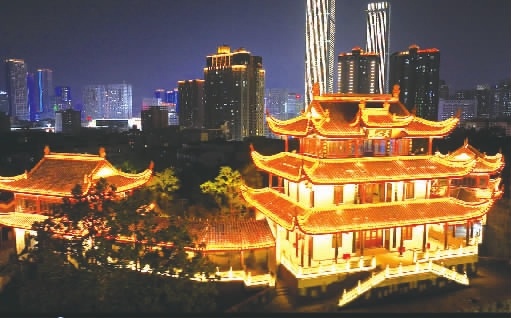 长沙天心阁景区在建园100周年之际,经过提质改造,将以“全省首个光影公园”的身份亮相,为广大游客朋友带来一场夜游的视觉盛宴。图为9月16日,记者探访景区所布置的场景。