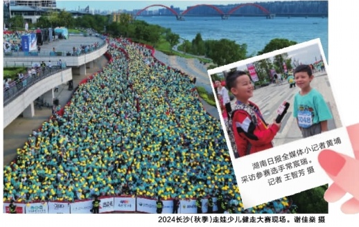 秋分日,家长和孩子们一路踏秋、赏秋,猜丰收谜语,欢歌笑语不断。9月22日,2024长沙(秋季)走娃少儿健走大赛在湘江畔举办,8000名儿童及家长携手挑战“超长版”16公里毅行。经过组委会统计,本次赛事完赛率再次超过90%。