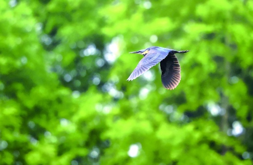 9月25日,长沙市雨花区同升街道,黑鳽在空中翱翔。长沙越来越好的生态环境,引来越来越多的野生动物,绘就出一幅幅人与自然和谐共生的美丽画卷。