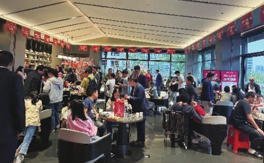 10月6日,在招商天青府营销中心,现场接待区已经被购房者挤得满满当当,甚至因为座位不够,不少置业顾问只能站着为客户讲解。“招商天青府国庆期间总来访超1500组,来访量比八九月提升了30%—40%。成交量超过100套,比八九月增长了近2倍。”招商天青府项目营销总监周燕辉说。