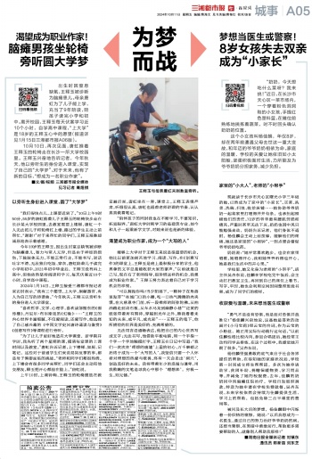 被问及长大后的梦想,杨佳麟眼中闪烁着一份炽热的憧憬,她说:“以后我想成为一名医生,通过自己的努力治好爷爷奶奶的病。还想当警察,在黑暗中勇敢前行,帮助更多需要帮助的人,就像别人帮助我那样!”