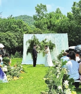 “新人想要一场户外森系婚礼,我们庄园的葡萄最近成熟了,就想着用葡萄做场景,整场婚礼共用了一百斤葡萄,婚礼结束后,葡萄大家都分了。”吴女士从事婚礼场景布置多年,这几年她明显感觉到办户外婚礼的新人越来越多了。“年轻人更注重婚礼的氛围而不是形式,好多人都不接亲,放弃了一些传统的仪式环节,就是玩游戏、聚会,没有太多负担。”