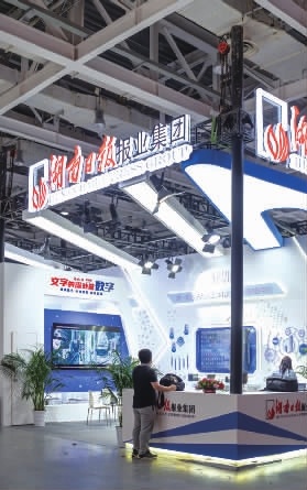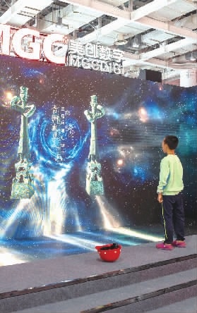 图 ①10月13日,湖南国际会展中心,美创数字展厅里各式多媒体装置播放的影片让人有身临其境的震撼感。图②:10月13日,湖南日报报业集团展台已完成布展。图③10月13日,“数字屈原”项目现场。湖南日报全媒体记者 辜鹏博 摄