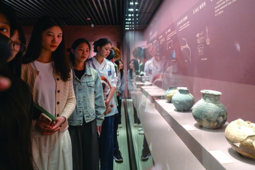 10月17日,观众在了解出土的部分陶器。当天, “谊居千年——贾谊故居南侧朝阳巷工地考古成果展”在湖南师范大学博物馆开展,首次展出了包括150余件瓷器、铜器、陶器等珍贵文物,讲述了长沙城市的发展变迁和生活图景。展览持续至2025年4月10日。