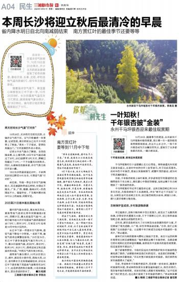 本周长沙将迎立秋后最清冷的早晨