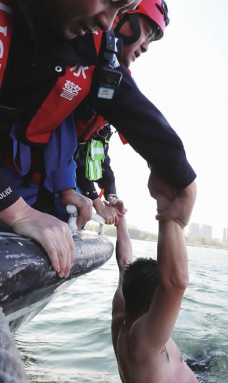 10月27日,记者从长沙市公安局获悉,25日16时03分,长沙市公安局治安管理支队水警大队接到群众报警,称有人从猴子石大桥上落水。情况紧急,执勤民警杨一帆、辅警李阳迅速行动,和蓝天救援队队员一起登船出发,赶赴现场,只用13分钟就成功救起落水者。