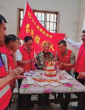 为村里高龄老人送上生日的祝福