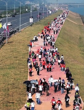 湖南百公里活动始于2007年,是中国起步最早的万人规模毅行活动,也是国家级全民健身品牌赛事活动。17年来,引领28万余人毅行长株潭,从“春华”奔赴“秋实”,湖南百公里一路前行,一路收获。源源不断的青春洪流,见识了气吞山河的壮阔行进,更见证了数不胜数的钢铁意志。
