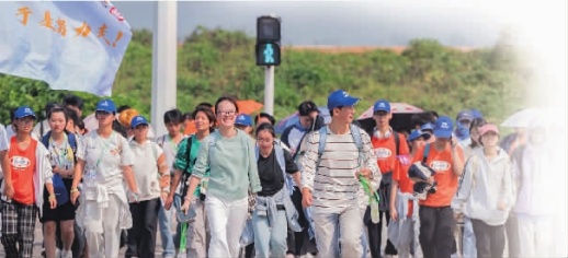 当然,青春和百公里并非年轻人专属。11月3日下午,记者见到了随毅行大部队走到终点的罗明春。“我是中南林业科技大学旅游管理专业教授,今年58岁,已经是第五次参加湖南百公里。我的学生们还在后面,都走不过我。”2021年,罗明春看到学生发的朋友圈,第一次参加了百公里,和学生一起毅行。“2023年和2024年,我又来了百公里,研究全民健身运动,带领大学生参加体育运动,更好地认识长株潭的风土人情。”