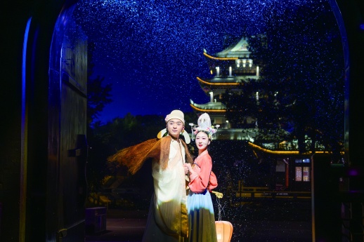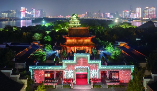 11月6日晚,橘子洲·江天暮雪文化园开园迎客,围绕该园制作的文旅演艺《花开橘洲·江天暮雪》正式对外演出。这档以宋朝人物、风情为背景打造的节目,以声、光、水、雾、电为画笔,为“长沙会客厅”橘子洲再添文旅新场景。