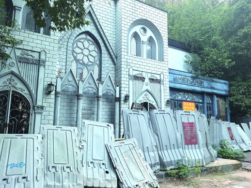 在门口,记者遇到了一位身穿礼服,准备来拍照的游客,“我是在网上看到别人拍的照片才找过来的,这有点像中世纪的古堡,比较适合拍暗黑、神秘风的照片。”她表示,来了以后才发现被封了,“而且看上去很危险,还是不进去了”。