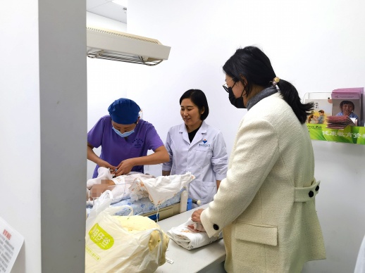 “可以接孩子了。”听到护士的“召唤”,夫妻俩赶紧到了出院接待区,洗得干干净净的安安终于出来了。张芸协助护士给安安穿上新衣服,丈夫则在一旁逗弄着女儿,“宝宝,回家啦!太好了,终于回家了”。