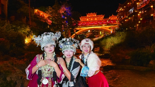“古镇建在瀑布之上,这种独特的地理位置就让人眼前一亮。而且芙蓉镇的夜间活动和夜游项目非常丰富,很符合我们泰国人喜欢逛夜市的习惯。”帕查彤说。