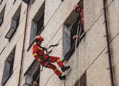 阳光洒在训练塔上,四层楼高的建筑如同一个沉默的巨人。“四楼绳索攀爬。”邓淼一声令下,队员们穿戴好攀爬装置,起跳、卷腹、上蹬、左右手交替向上拉绳,动作一气呵成,眨眼的工夫便登上四楼高度。