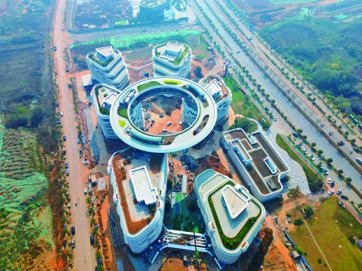 该项目秉承“国际视野、智慧生态、湖湘特色”的总体设计定位,以生态、智慧、共享为设计理念,采用立体生态绿化系统、多功能共享空间、全封闭新风幕墙系统、污水源热泵空调系统、太阳能光伏系统、车位引导系统、建筑能耗监测系统、海绵城市及微滴灌溉等先进技术理念。作为大泽湖片区先行启动的产业载体,项目聚焦智能终端、生命健康两大主导产业,将打造成为具有世界视野、国际标准的城市地标新名片。