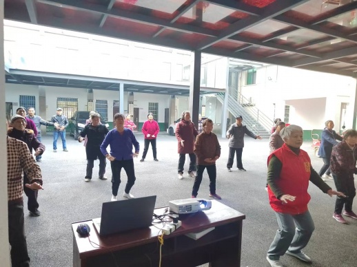 慢慢地,免费提供美味早餐的锻炼点开始在老人们间传开,越来越多的老人开始在村中广场上聚集。今年,随着参与人数越来越多,为了方便更多的老人们锻炼,11月12日,村中闲置的幼儿园又被开发出来,成为老人们的第二个集中锻炼点。
