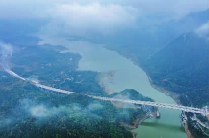 11月19日,石门县仙阳湖,正在建设中的炉慈高速跨湖大桥,犹如“长虹”飞架。炉(红山)慈(利)高速是国家高速公路网中的一条重要干线G59呼(和浩特)北(海)高速的组成部分,依次连接长江三峡、国家级自然保护区壶瓶山、世界自然遗产张家界,预计2025年通车。