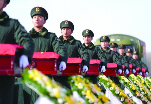11月28日,第十一批在韩中国人民志愿军烈士遗骸迎回仪式在沈阳举行。43位志愿军烈士遗骸及495件遗物由我空军专机从韩国接回至辽宁沈阳,回到祖国怀抱。