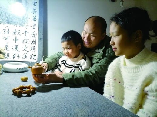 11月28日18时,李子迷的一对儿女放学回家,来到位于邵阳市双清区的工作室,缠着他教授雕刻葫芦的手艺。看到孩子们对传统手艺如此感兴趣,李子迷开心地说:“我们宝庆瓠艺的传承后继有人了。”