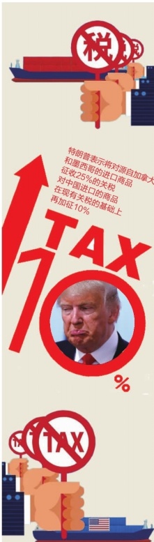 特朗普11月赢得美国总统选举,将于明年1月开启他的第二个总统任期。他25日在社交媒体平台上说,他上任后将对墨西哥和加拿大出口美国的商品征收25%关税。此言立刻引起墨、加这两个美国近邻兼主要贸易伙伴的激烈反弹。