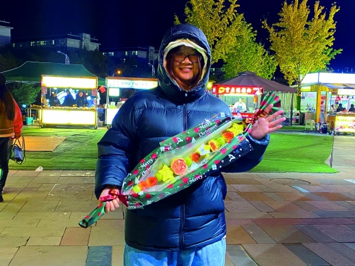 郑光庭与家人在长沙售卖糖葫芦多年,前段时间在网上刷到了哈尔滨的一米糖葫芦,觉得挺有意思,而且在网上热度很高,便顺势在自家摊位也推出了这一产品。