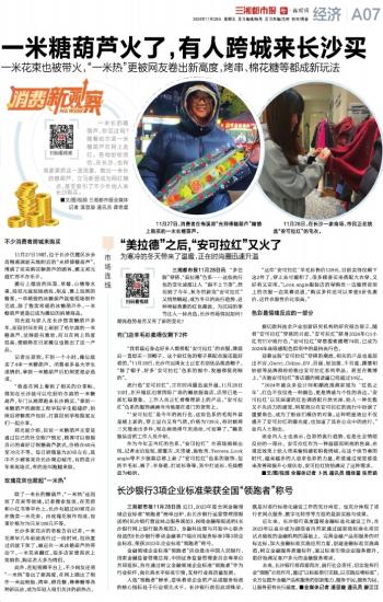 “我看最近身边好多人都搭配‘安可拉红’的衣服,降温后一直想买一顶帽子,这个暗红色的帽子搭配衣服还挺好看的。”11月28日,长沙市民周女士正在名创优品挑选帽子,“除了帽子,好多‘安可拉红’色系的围巾、发圈都挺亮眼的”。