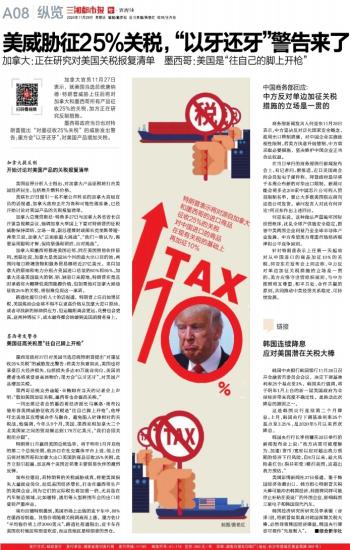 美威胁征25%关税, “以牙还牙”警告来了