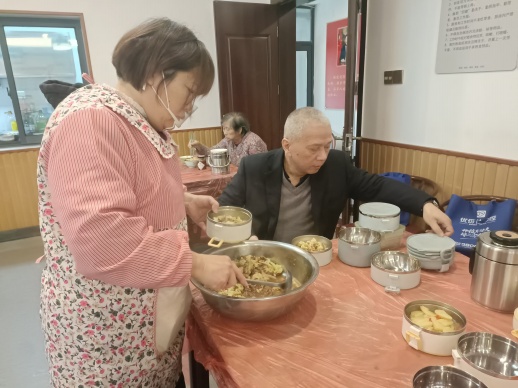 “有些老人不方便出行,我们会提前装餐,请志愿者送上门。”侯利纯介绍。出餐间隙,记者陪同志愿者上门送餐。二机小区14栋张娭毑家,从志愿者手中接过热腾腾的菜饭,老人从厨房取出碗筷,招呼老伴趁热吃。