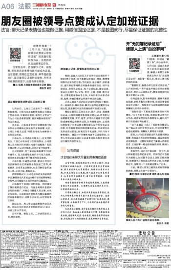朋友圈被领导点赞成认定加班证据