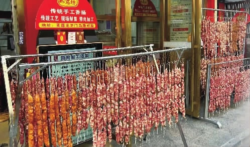 “冬至后到年前七八天的时间里,大家都在准备年货,这期间是现灌香肠的高峰,而到了年关时间紧迫,顾客主要是买成品肠,用于过年串门送礼。”张先生还表示,由于香肠需要低温腌制,因此销量与天气紧密相关,“天冷的时候出货快,销量也高,特别是现场加工香肠的顾客变多,早上时常需要排队”。