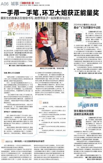 从环卫工到湖南湘江新区作家协会会员,从投稿石沉大海到4件作品获得全国性奖励,来自湖南长沙的环卫大姐黄新生用行动追寻着自己的文学梦,三湘都市报多次报道了她勇敢追梦的故事(详见本报2023年2月18日A03版、2024年12月17日A05版)。