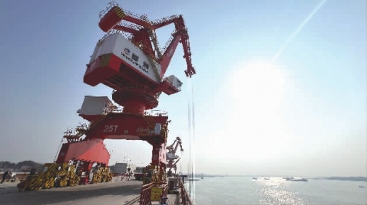12月21日上午,记者从金龙产业园一路向北,驱车30余分钟,来到了长沙临港产业开发的虞公港产业园。在虞公港区内,各类设备正紧锣密鼓地进行中,大型港口起重机陆续将停泊在港口码头的钢材吊装上岸。