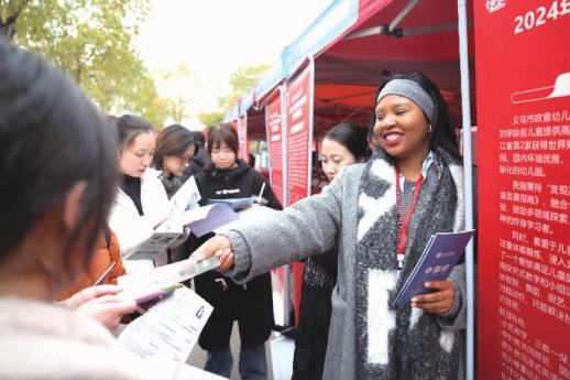 12月23日,长沙师范学院,来自义乌的幼儿园工作人员现场发放招聘资料。当天,由民盟湖南省委会主办,长沙师范学院、长沙市人力资源和社会保障局、义乌市人力资源和社会保障局承办的“暖冬送岗,职引未来”助力大学生就业暨星沙片区高校2025届毕业生冬季双选会举行。此次招聘单位共有253个。