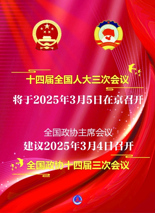 十四届全国人大常委会第十三次会议12月25日表决通过了关于召开十四届全国人大三次会议的决定。根据决定,十四届全国人大三次会议将于2025年3月5日在北京召开。