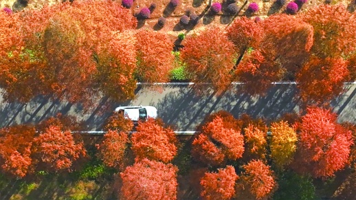 一河、一路、一林相映成趣,正值观赏好时节