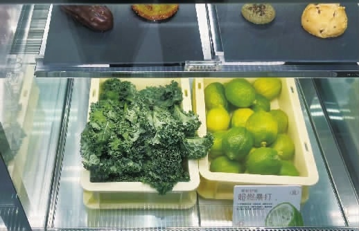 1月5日中午,长沙印象城喜茶店员工正在加急制作排单的“纤体瓶”,装满绿色果蔬汁的瓶子格外醒目,一旁的榨汁机中也堆起了高高的羽衣甘蓝和苹果。而在喜茶长沙泊富ICITY店内,食材展示柜中的羽衣甘蓝被摆放在醒目位置。美团数据显示,半年内,喜茶“纤体瓶”相关产品团购已售出超66万单。