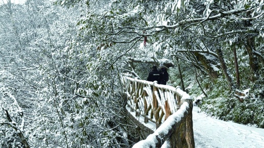 与此同时,岳阳市天岳幕阜山景区也迎来了2025年的首场降雪。雪花纷纷扬扬地飘落,将景区装扮得如同童话世界一般。游客们纷纷驻足观赏,拍照留念,享受着这份难得的冬日美景。据气象数据显示,降雪期间,湘西北局地还将迎来大雪甚至暴雪天气,提醒市民和游客们注意防寒保暖,确保出行安全。